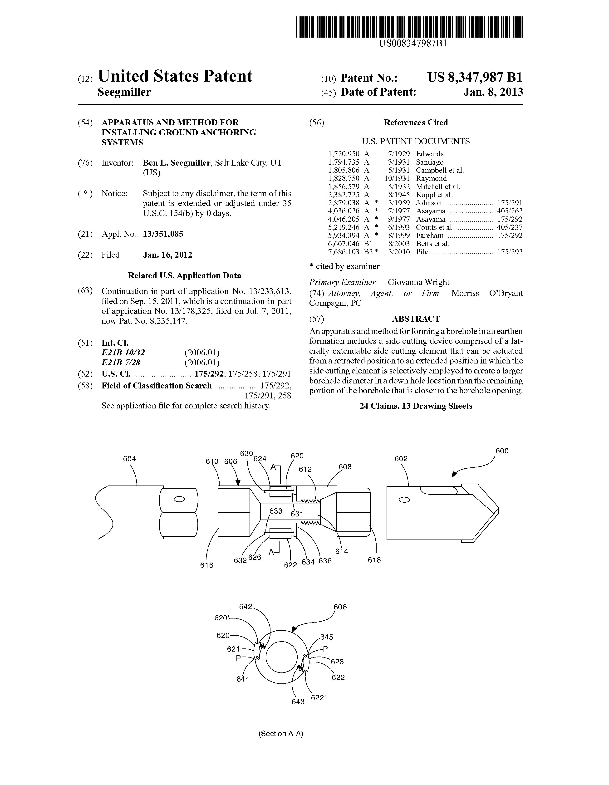 Morriss O’Bryant Compagni obtains patent for APPARATUS AND METHOD FOR INSTALLING GROUND ANCHORING SYSTEMS