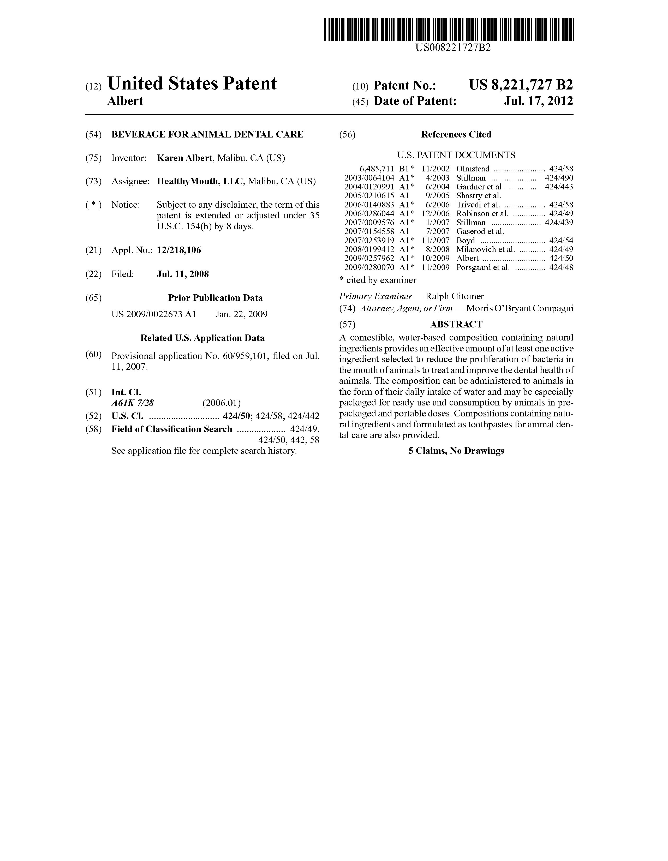 Patent No.: 8,241,556
